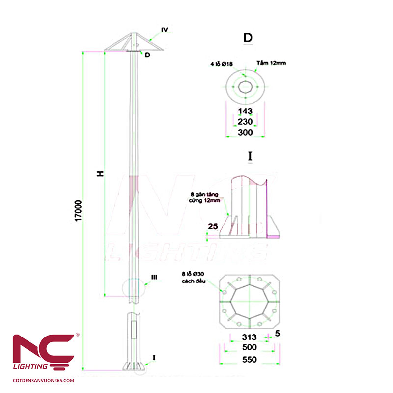 Cotdensanvuon365 không chỉ nhận sản xuất cột đèn pha 17m mà còn nhận sản xuất các loại cột đèn chiếu sáng theo yêu cầu, thiết kế của khách hàng.